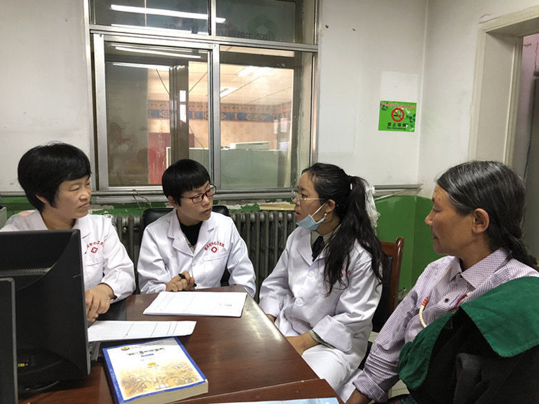 周坚红(左一)和团队成员在青海省海南藏族自治州为当地妇女义诊。
