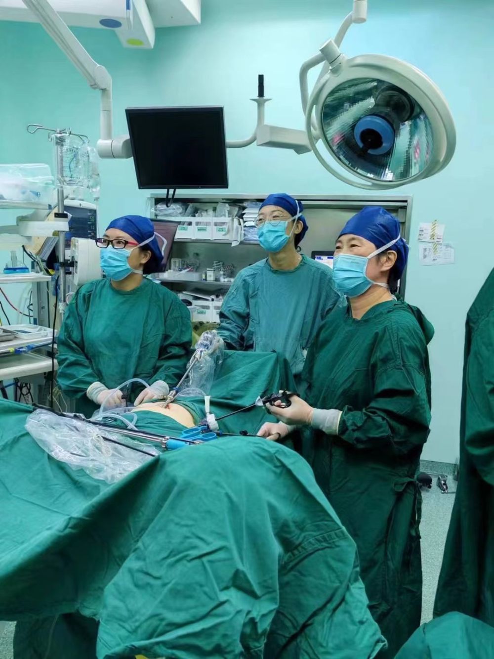周坚红(右一)在手术中。
