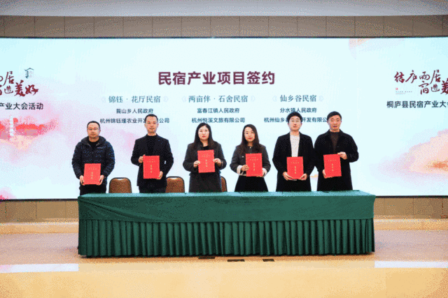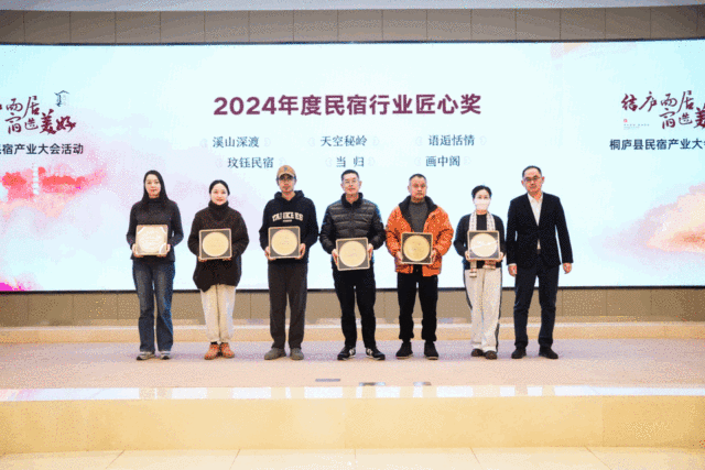 活动现场,桐庐民宿摄影比赛优秀奖和入围奖揭晓,2024年度民宿行业新锐奖、人气奖和匠心奖也一一表彰。桐庐县民宿行业协会还与多家单位签订合作协议,为民宿产业进一步发展筑牢根基。