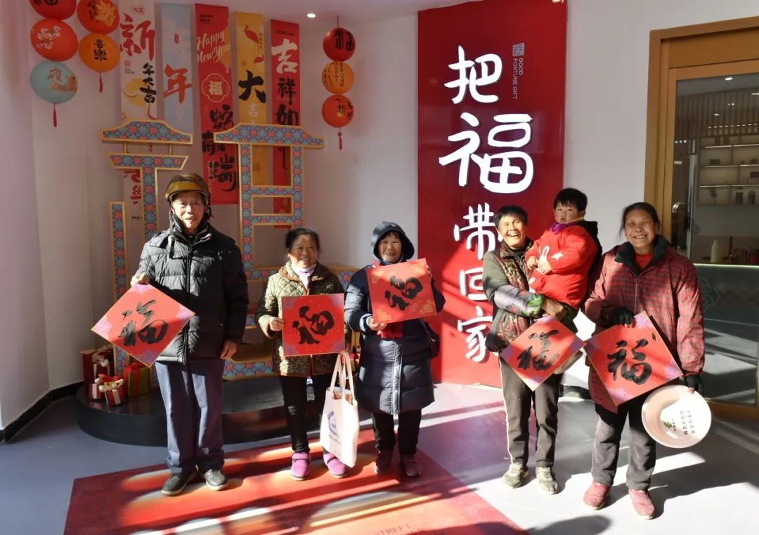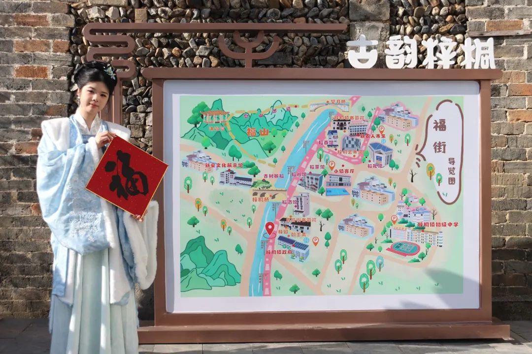 在梓桐的传统民俗中,书画与“福文化”的结合占据着举足轻重的地位,书法“福” 字、祈福对联、“福”字饰品、“福”字瓦当、“福气”绘画……生活中处处有“福”。“福街”正是于这独特的“福文化”之中演变而来。该创意以大力推进乡村振兴为根,以发扬书画特色为脉,以追求人民美好生活为魂,通过中国美院的专业策划,将书画“福文化”与艺术乡建相融合,让沿溪街市焕发出新的活力。