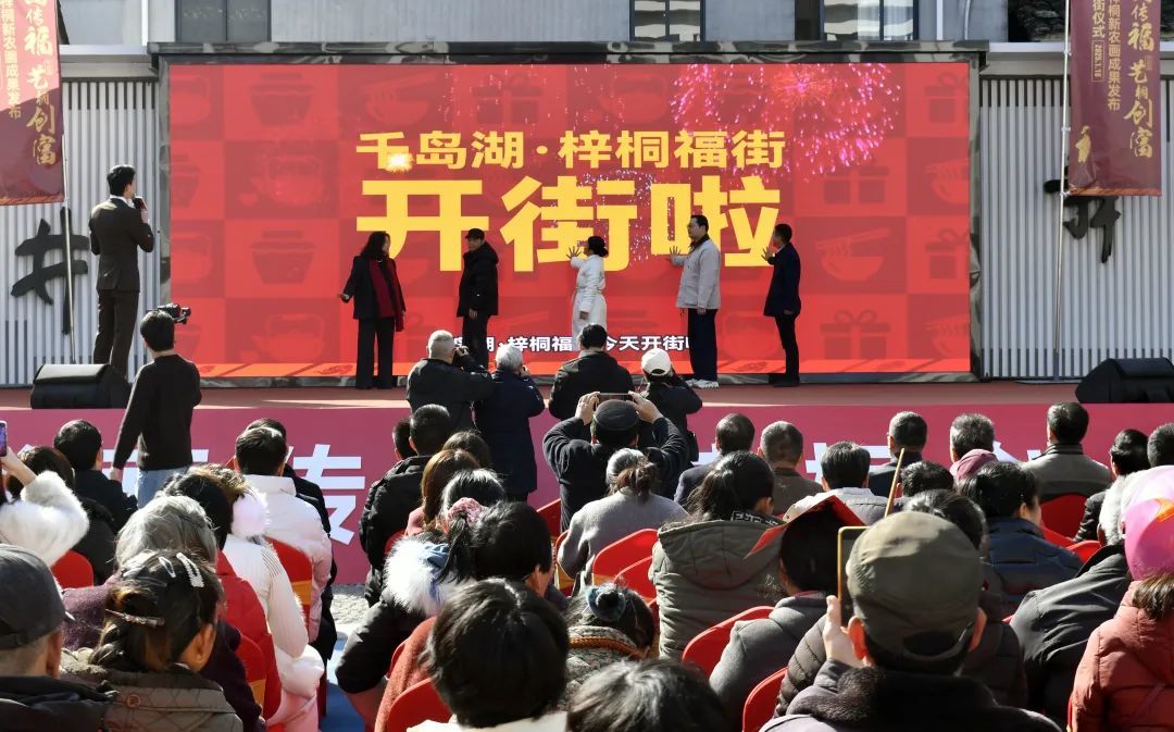 1月19日,“书画传福 艺桐创富”——千岛湖·梓桐新农画成果发布暨福街开街仪式在淳安县梓桐镇举行。活动现场,梓桐镇发布了梓桐新农画的品牌定义、研学产品等成果,由梓桐福文化发展而来的特色街道——“福街”也正式开街“接福”,为千岛湖喜添“福气”新地标。