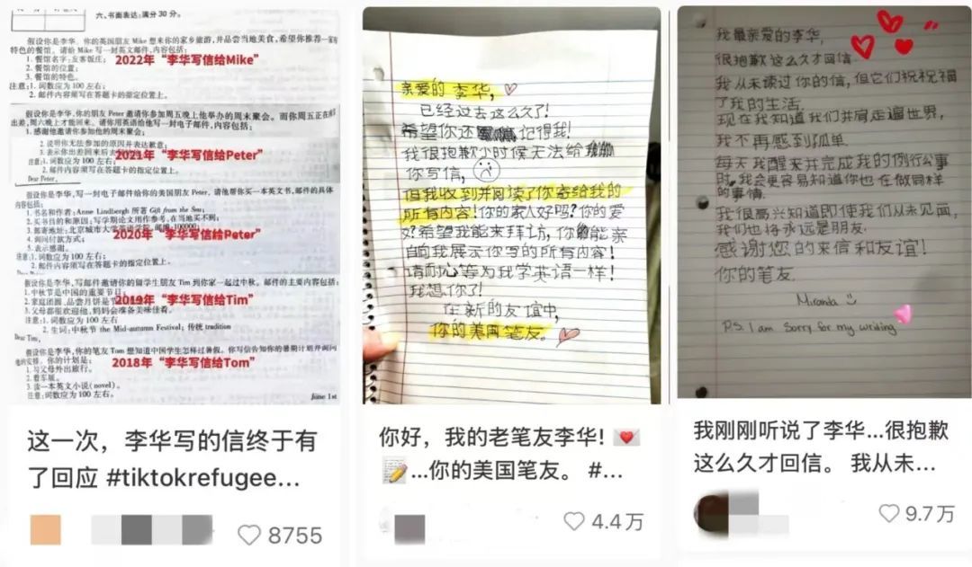 近日,一些“TikTok难民”了解到中国朋友“李华”曾给外国笔友写了许多信之后,纷纷给“李华”回信,感动不少网友 图源:小红书截图