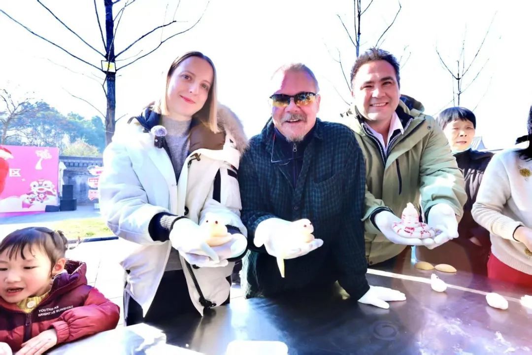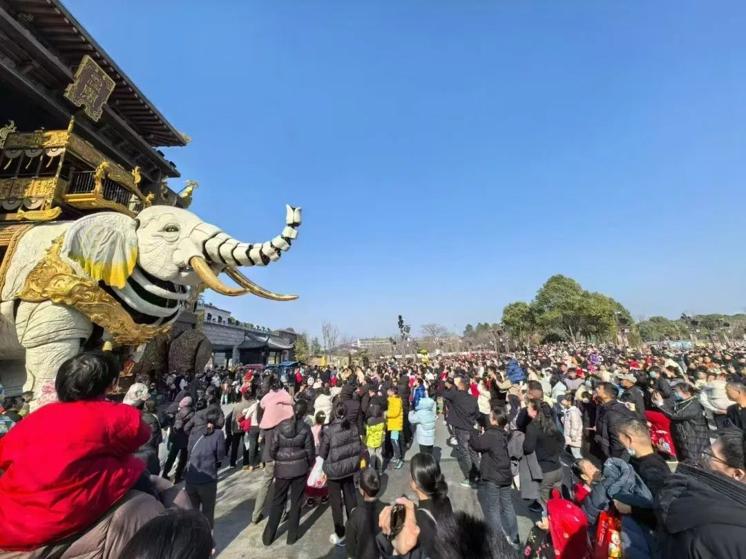 此次年货节不仅有套圈、投壶、搡年糕等年味游戏互动,也有剪纸、春联、泥塑等手工艺品制作,还有机甲大象巡游、舞狮表演等,这样的人气引发了市民对年货采购的热情,也让市集成为市民在春节前相聚、交流的欢乐场所。