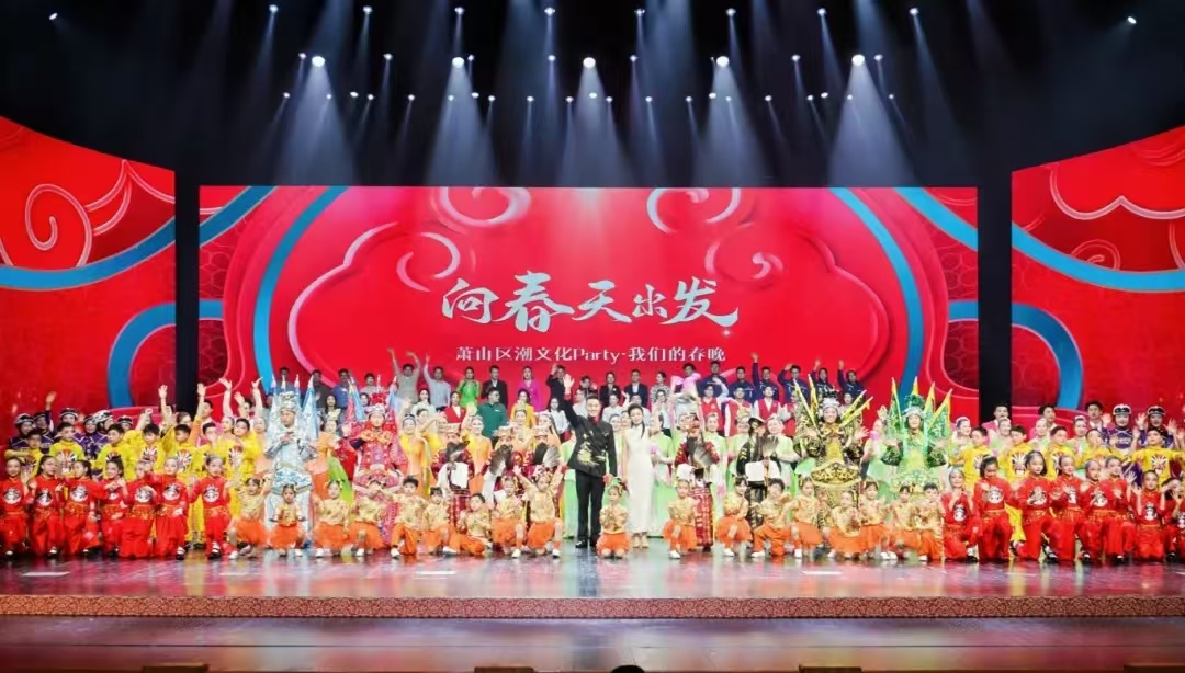 2024年12月,“春节——中国人庆祝传统新年的社会实践”被联合国教科文组织列入人类非物质文化遗产代表作名录。申遗成功后的首个春节,萧山过的很特别。当晚,向春天出发——萧山区“潮文化Party·我们的春晚”在萧山剧院精彩上演,村舞《幸福飞扬》、短片《XIAO美好》、莲花落《千万工程 源起梅林》、情景讲述《最青年 在萧山》……晚会分为“温暖如春”“春华秋实”“笑迎新春”三大篇章,从不同节目类型、多种表演形式和温暖人文关怀,全方位展现了各行各业萧山人奔竞不息、勇立潮头的奋斗精神,共同唱响这座青春之城的“青春之歌”。