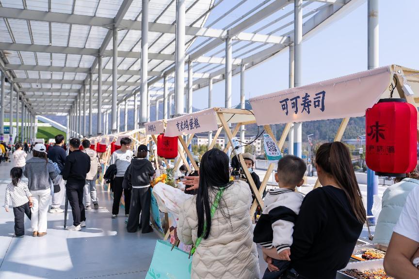 在激烈的马术竞技之余,看台区域的桐乐汇生活市集为赛事增添了浓厚的“烟火气”,让观众在观赛之余领略到别样的市集文化。