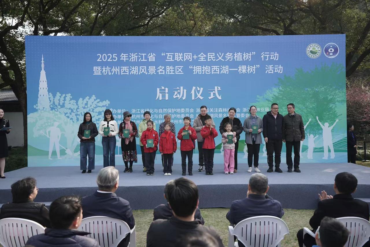一树一码连山水,指尖春风绿西湖。3月8日下午,2025年浙江省“互联网+全民义务植树”暨杭州西湖风景名胜区“拥抱西湖一棵树”活动启动仪式在西湖孤山举行。