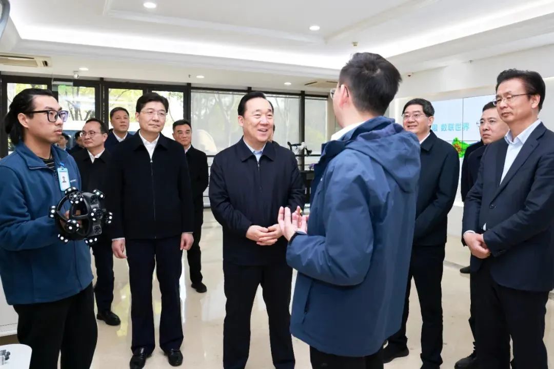 3月17日下午,省委书记王浩察看思看科技股份有限公司科技创新成果展示。潮新闻记者 李震宇 摄