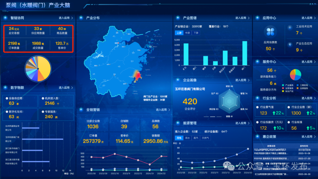 通过引进清华长三院等技术力量,玉环成立泵阀(水暖阀门)产业大脑,为企业提供可复制、通用性、个性化等数字化改造服务。“共性应用场景全选,个性应用场景我们选择了降本增效、生产排产等模块。在产业大脑里找模块,就像网购一样方便。”试运行半年多,三盛阀门相关负责人钟剑慧表示,准时交货率、质量合格率都提升约20%。