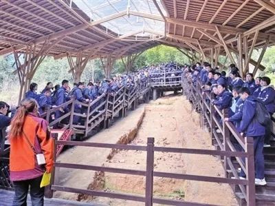 春日午后的凤凰山麓,绿城育华城东实验学校的学生们正俯身观察古龙窑遗址。在研学营地内,陶艺中心的白瓷素胚与教育区内大型显示屏相映成趣,正以“活态传承”为核心理念,将越窑青瓷的千年文脉转化为可触摸的教育场景,构成传统文化与现代教育的交响乐章。