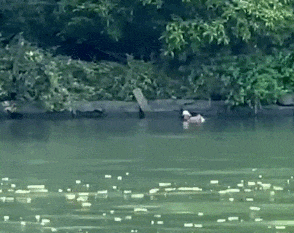 记者来到长桥公园。事发位置的近岸水域,一直没有鸳鸯现身。等了很久,对岸处才远远出现一只鸳鸯,但没有靠近。