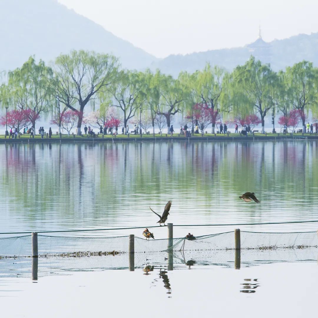 湖城相依,西湖从来不只是山山水水的自然景观,那些活跃在湖边树上的鸳鸯松鼠,早已是西湖文化的一部分。它们的安居,也从一个方面佐证了西湖是人与自然和谐共生的典范。