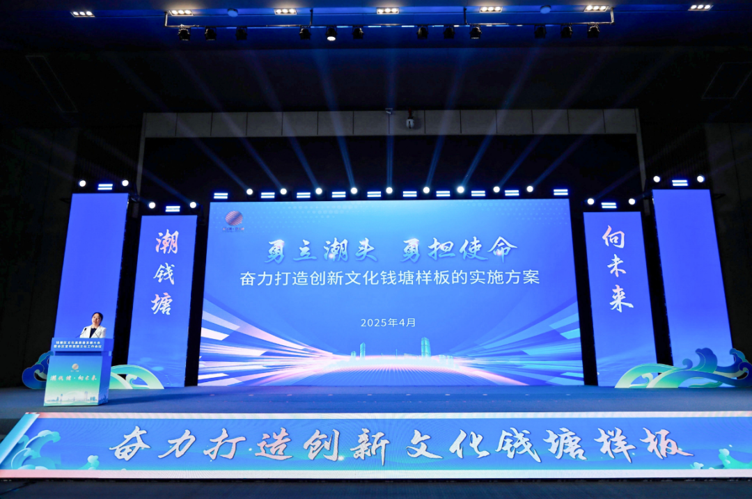 大会发布《关于勇立潮头 勇担使命 奋力打造创新文化钱塘样板的实施方案》(以下简称《方案》)。《方案》提出,钱塘将围绕“创新、融合、活力、开放”目标要求,大力发展具有强大思想引领力、精神凝聚力、价值感召力、国际影响力的新时代中国特色社会主义先进文化,打造一批在省域层面出圈出彩的文化产品,成为杭州加快建设世界一流历史文化名城的新窗口。具体是紧紧围绕建设成为思想铸魂先锋区、文化创新活力区、精神富有引领区、文产融合示范区、开放文化集聚区“5”个目标任务,开展深化实施习近平新时代中国特色社会主义思想研究传播工程、传承拓展钱塘历史文脉、大力推动文化事业产业繁荣发展、聚力推动共同富裕精神富有、全力推动文旅深度融合发展、加强文化交流和传播能力建设、加快高水平文化人才队伍建设等“7”项重点工作,深入推进“文化+科技”“文化+旅游”“文化+民生”等“3”项改革创新举措,统筹推进组织领导、资金配套、评价管理等“3”个组织管理机制,构建“5733”工作体系,更好担负起新时代的文化使命,奋力打造创新文化钱塘样板。