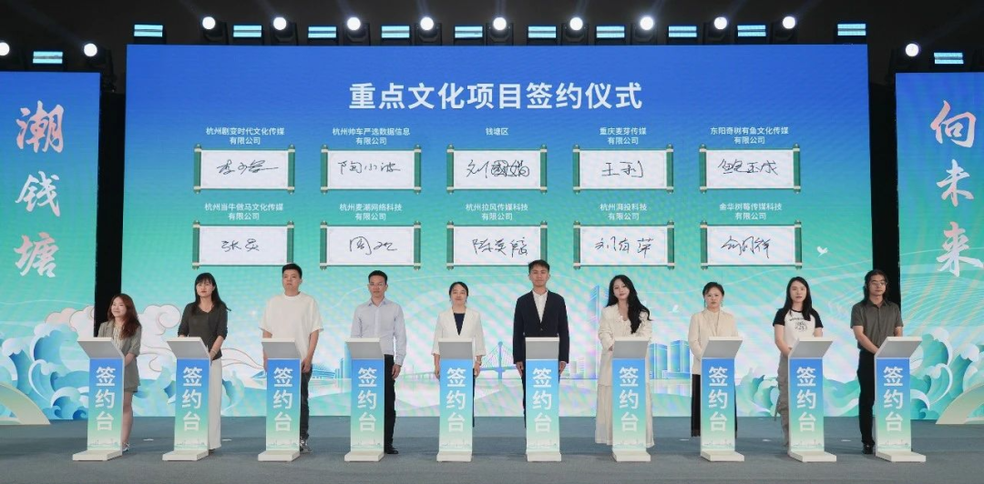 钱塘区与省文投集团在会上正式签署战略框架合作协议。剧变时代、拉风传媒、麦潮网络等一批重点文化项目也在会上签约。