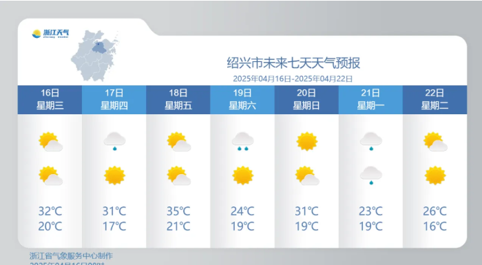 周五的绍兴,温差达14℃图源:浙江天气