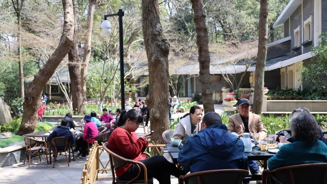 茶客在杭州湖畔居太子湾店享受休闲时光。湖畔居供图