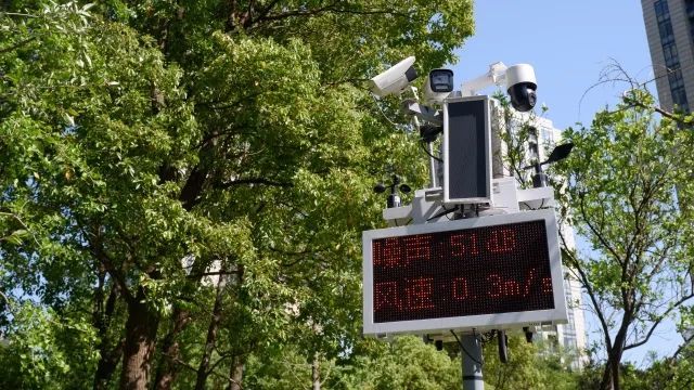 赶赴现场发现是放学孩童的嬉闹声,陈队长说,这是临时声响且并非休息时间,系统预警只是例行提示。不一会儿,噪声分贝便回到了正常数值,广场上的噪音监测屏实时更新着数值——57dB、54dB、51dB......