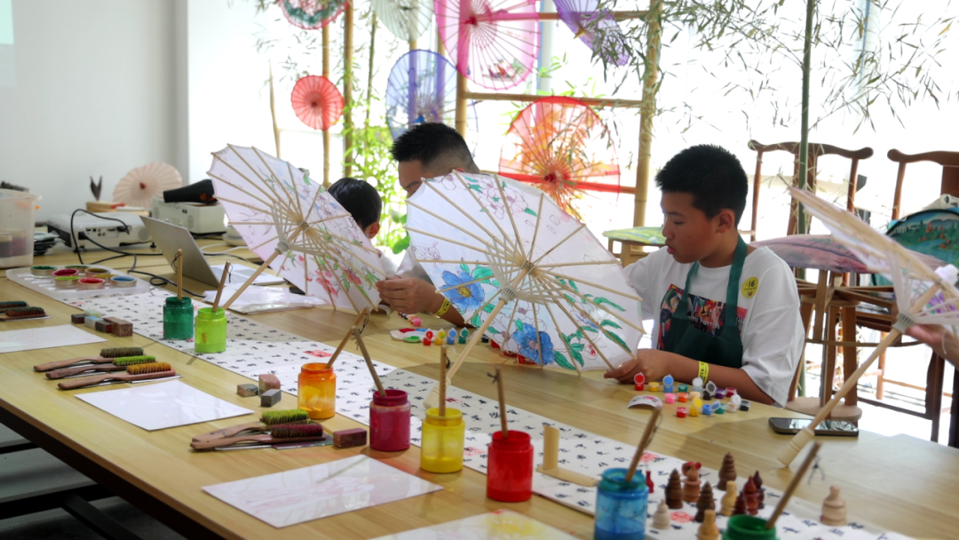 游客王艳琴带着家人体验了一回非遗:“原先我只知道这个伞是可以彩绘,但是从来没有体验过这种刷花工艺,原来这一把伞可以把它做得这么漂亮,体验感非常好。”