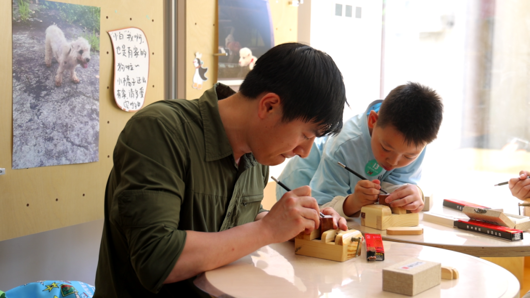 在青山村艺启共富工坊,非遗研学派队吸引了不少大小朋友,西湖绸伞宋志明、中泰竹笛丁志刚、莱莱竹编莱莱等大师匠人亲授非遗技艺。活动涵盖金石篆刻、西湖绸伞彩绘、木版年画等多个项目,每天都有不同的非遗体验,让参与者能够全方位感受传统文化的魅力,在动手实践中领略非遗技艺的精妙之处。