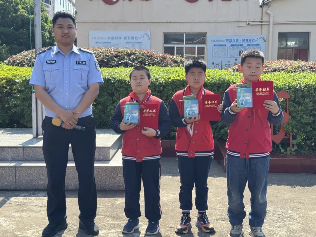 “小朋友们真厉害!凭借课堂所学知识,敏锐察觉问题,并采取正确处置方式,为禁毒工作提供了重要线索。”为表扬3名孩子的机智,5月12日,天台县公安局白鹤派出所民警来到鹤楼小学,为他们颁发“禁毒小卫士”荣誉证书与“和小安”手办等礼品。
