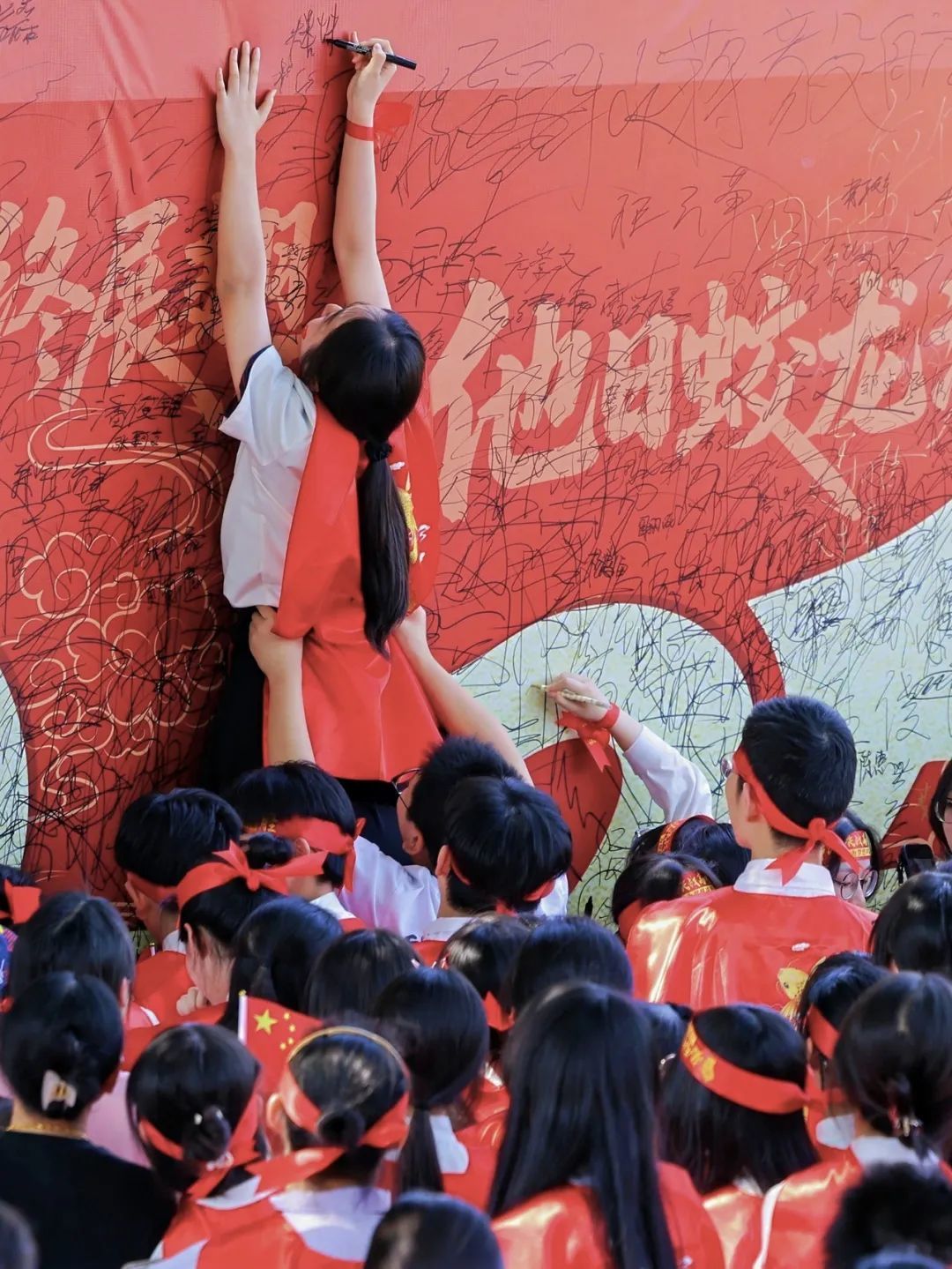 诸暨市草塔中学为高三学子举办的成人礼上,孩子们在心愿墙上签名 图源:潮新闻客户端