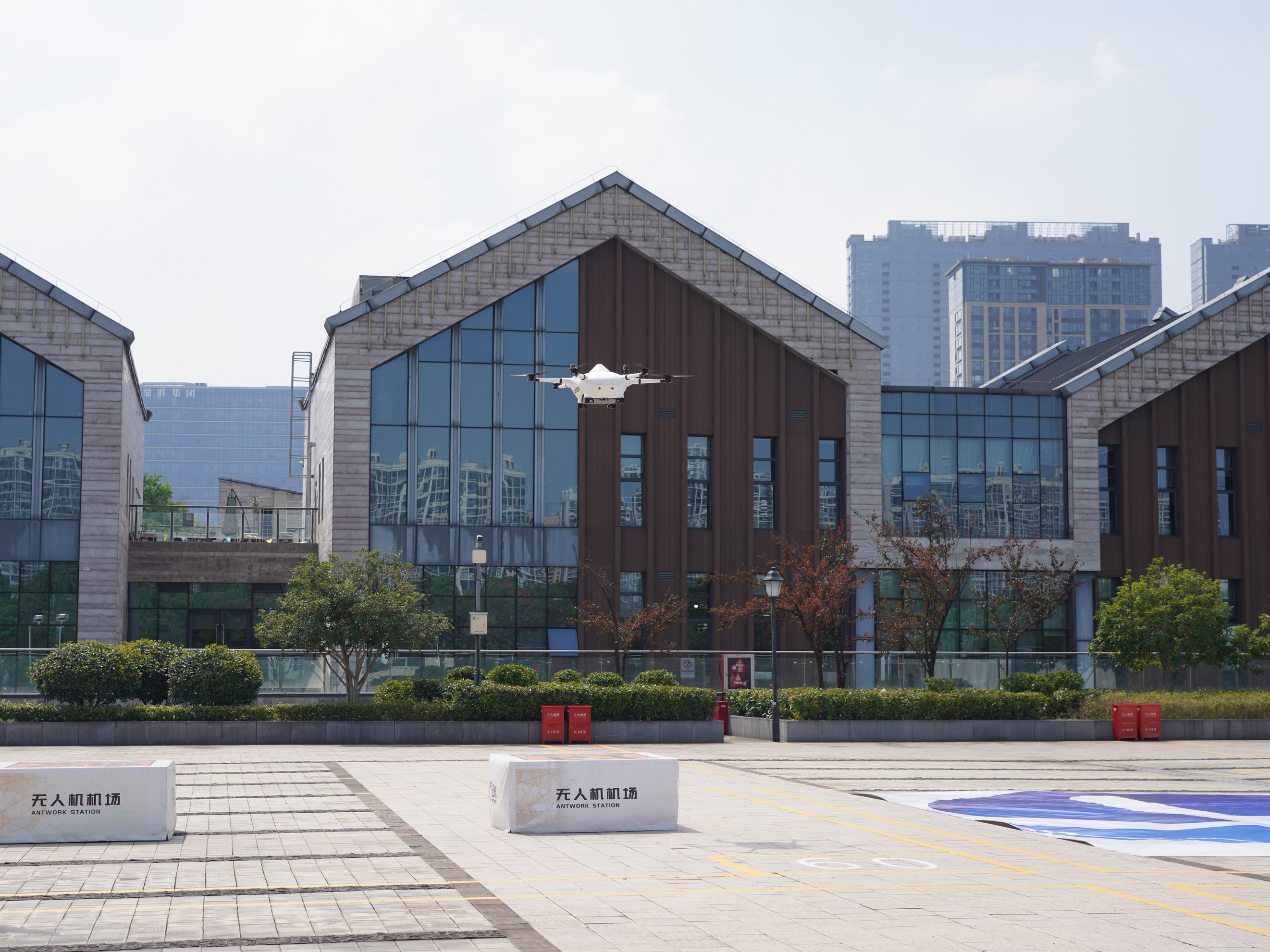 在梦想小镇,这里建有杭州首批枢纽型无人机公共垂直起降场。所谓枢纽,即意味着功能的全面。据悉,该起降场共有12个标准起降单元、1个应急备降区,已为迅蚁、韵鸢、丰翼等低空物流企业保障近千起降架次。