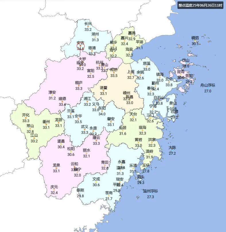 其实不止杭州,高温几乎遍布全省大部地区,最热的余姚达到38℃,绍兴(37.6℃)、宁波(36.2℃)、嘉兴(35.9℃)都创造了入夏以来新高。