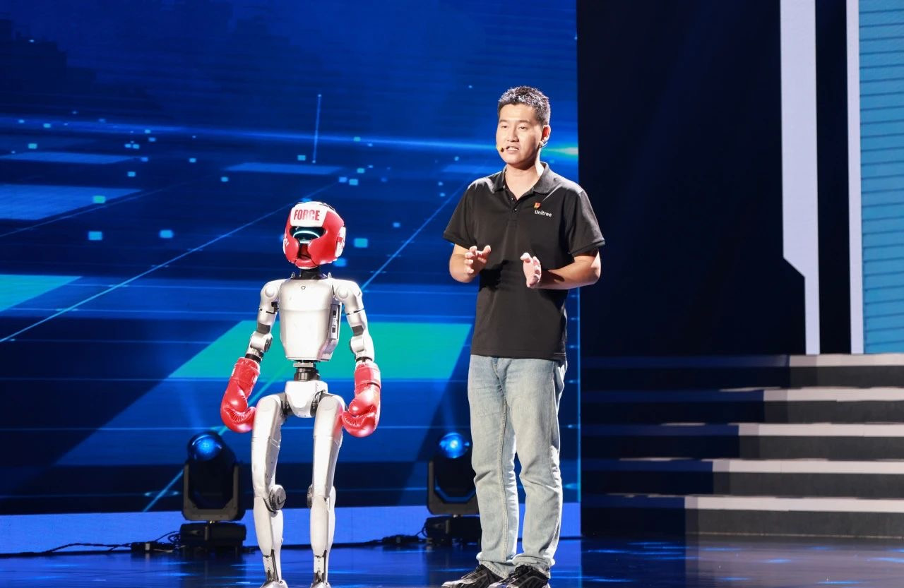 “我今年34岁,比起宇树团队平均29岁的年龄,很遗憾,拉高了平均线。”宇树科技党委书记侯田博文以诙谐开场,道出这支年轻团队的青春活力。话音刚落,一台1.3米高的人形机器人走上舞台,一系列行云流水的格斗动作再次引发全场惊叹。