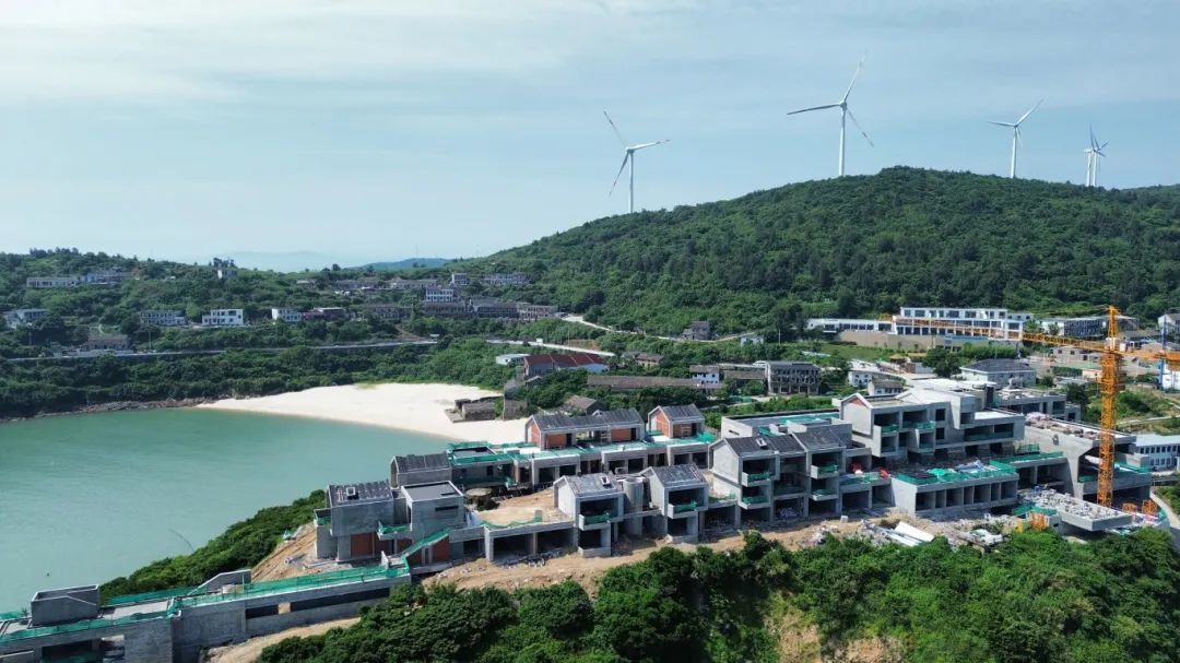 远处山脊上,“白色风车”傲然挺立,在转动中“点燃”万家灯火;沙滩东南侧,高端酒店拔地而起,在建设中回应美好期盼……这样一幅景致,筑稳了上大陈岛文旅蓬勃发展的服务保障“基石”。