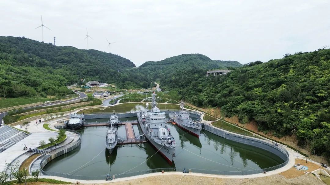 新建的港池里,5艘舰艇整齐列队;后方草坪中,战机等装备一字排开……在上大陈岛大岙里片区,威严且壮观的大陈岛军事文化体验中心已进入试运营阶段。
