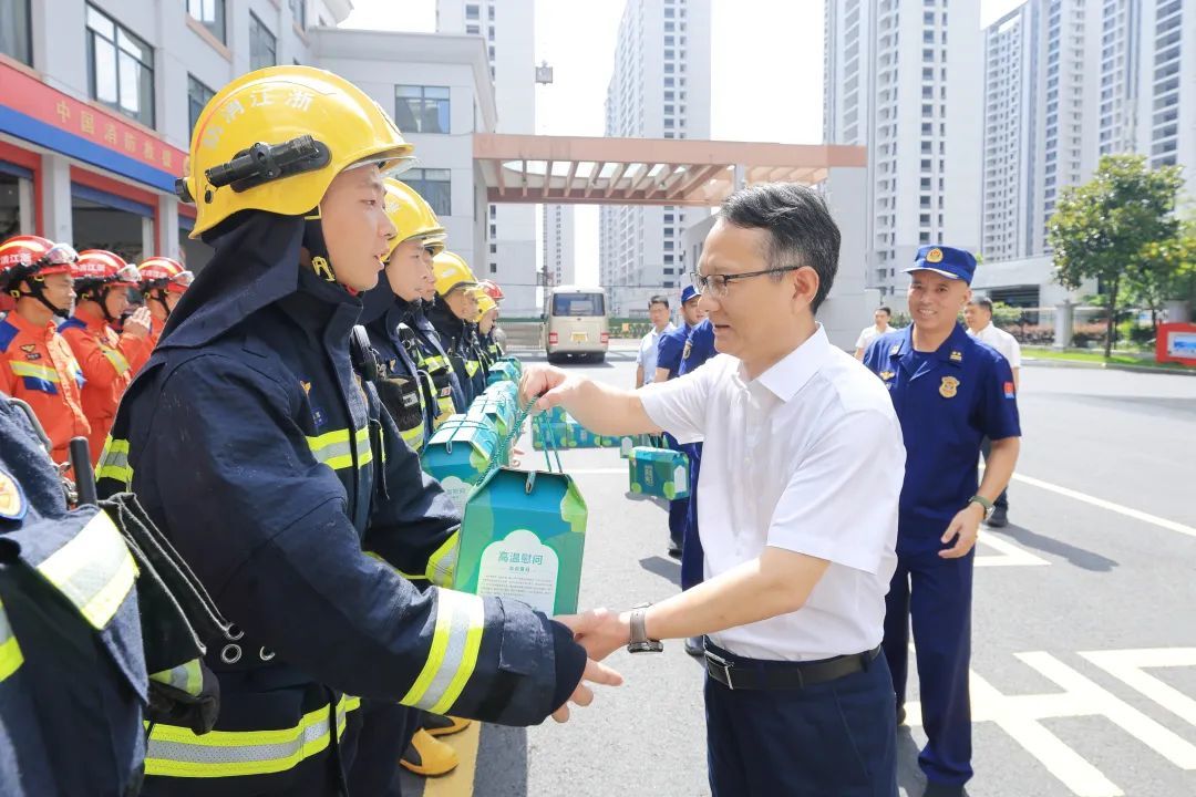 王健来到椒江区消防救援大队,亲切慰问高温下坚持训练备勤的消防指战员,现场观摩各类救援装备展示。他说,消防救援队伍是守护城市安全的忠诚卫士,希望大家发扬英勇顽强、敢打必胜的优良作风,科学安排夏季日常训练,不断提升应急救援能力,更好守护人民群众生命财产安全。台州大剧院项目现场,建设者们顶着烈日忙碌作业,王健叮嘱大家注意劳逸结合,做好自身安全防护,并要求施工单位落实防暑降温工作措施,为建设者们提供良好的工作生活条件,确保项目保质保量、安全高效推进。椒江区网约车司机联合工会内部设有新业态“司机之家”,为司机群体提供自助洗车、优惠充电等20余项柔性服务。王健与司机代表亲切交流,关切询问日常工作等情况,希望大家坚持安全第一,合理安排好工作和休息时间;要求有关部门做好新就业群体的思想引导和服务保障工作,全力维护他们的合法权益,不断拓展多元暖心服务,让他们有更多的归属感、获得感、幸福感。