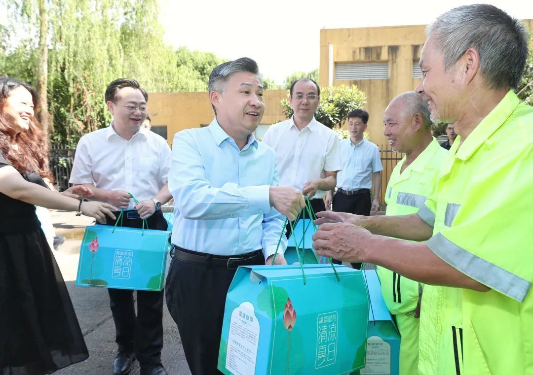 眼下即将入伏,高温晴热天气将给群众生产生活带来“烤”验。近日,台州市委书记沈铭权,市委副书记、市长王健,市人大常委会主任吴海平,市政协主席叶海燕,市委副书记苗伟伦等市领导分组深入基层一线,看望慰问奋战在高温酷暑一线的劳动者,并向全市各行各业劳动者表示慰问和感谢。