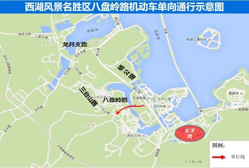 附件:西湖风景名胜区八盘岭路机动车单向通行示意图