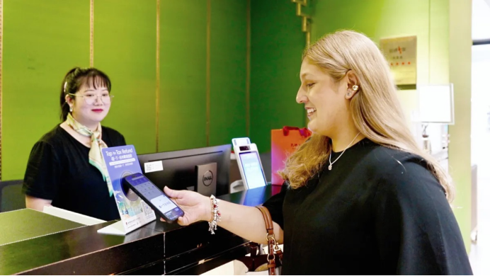 “我非常喜欢杭州,这座城市是诗情画意跟先进科技完美结合,现在用支付宝‘碰一下’就能丝滑退税,这是我去了那么多国家旅行和退税后遇到的最好的退税服务,很先进很方便!”来自墨西哥的Andrea在万事利买了一条丝巾,体验杭州退税速度后赞不绝口。她表示,自己常跟国际友人推荐来中国旅行,免签很方便,退税超便捷,下载支付宝App后就可以畅游畅买。