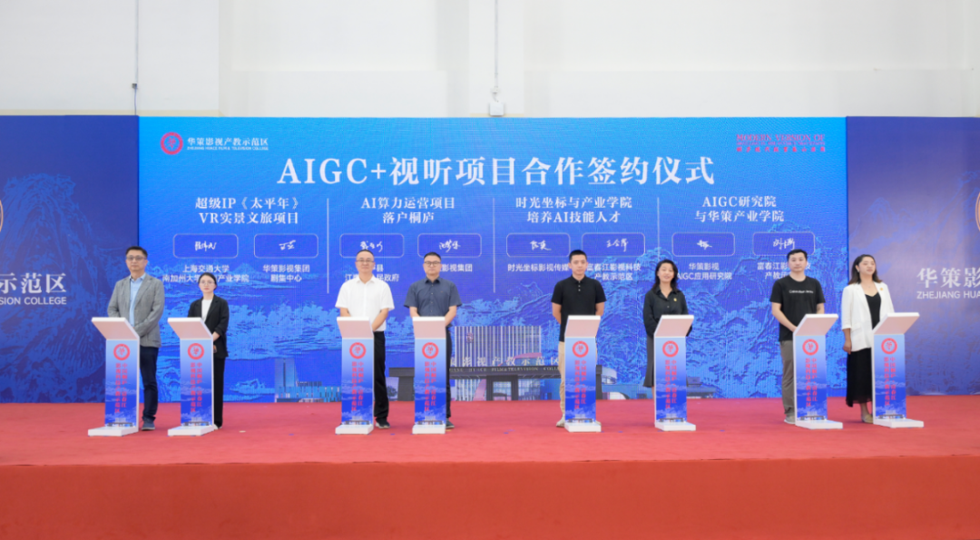 华策影视集团打造的历史剧《太平年》VR实景文旅项目将超级IP转化为沉浸式体验并落户桐庐;AI算力运营项目落户桐庐江南镇,为影视数智化转型提供支撑;时光坐标与示范区共建AI人才培养体系;AIGC研究院与示范区签约,实现技术研发到人才培养的全链路布局。