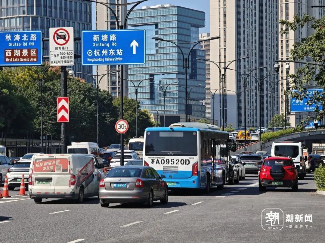 9月16日上午9点,杭州早高峰接近尾声,艮秋立交(新塘路入口)依旧排着长队,队尾一路绵延至运河东路附近。