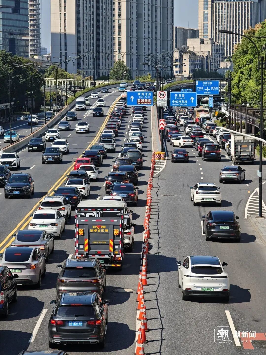 刚过早高峰,车龙依旧绵延