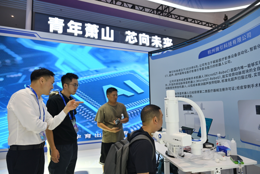 微医参展人员表示,依托萧山产业生态优势和优越的政策环境,计划10月迎客的微医AI国际健康中心将在大数据应用、上下游资源链接、场景应用等方面展开深度探索,在萧山形成从基础研究、技术开发到场景应用的完整产业链。