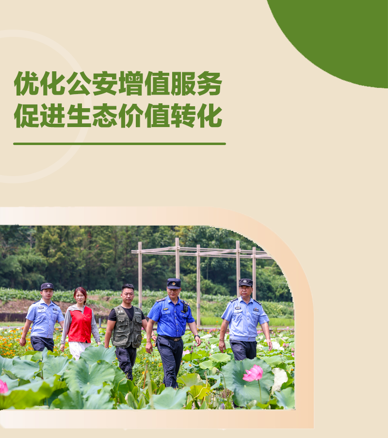 集成公安政策服务,主动靠前,能动履职,助力拓展“两山”转化通道,让生态“高颜值”催生更多经济“高价值”。