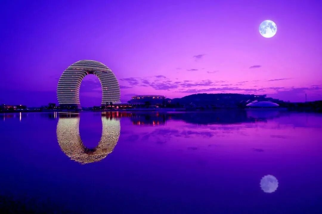 位于太湖旅游度假区的月亮酒店,这里的月色融入在湖州最经典的夜景里,明月、流水、微风一样不少,倒映在太湖中的月亮酒店与天上的月亮遥相呼应!在太湖边吃上一顿湖鲜,沿着湖边走走,赏月情调满分。