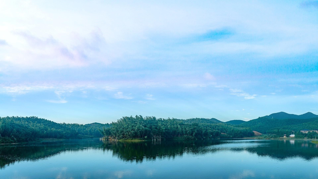 富春江似一条碧绿绸带,穿起两岸青山,江水清澈见底,滩渚星罗棋布,岸边竹树葱郁,藏着自然的灵秀与岁月的沉淀,透出宁静的迷人气息。