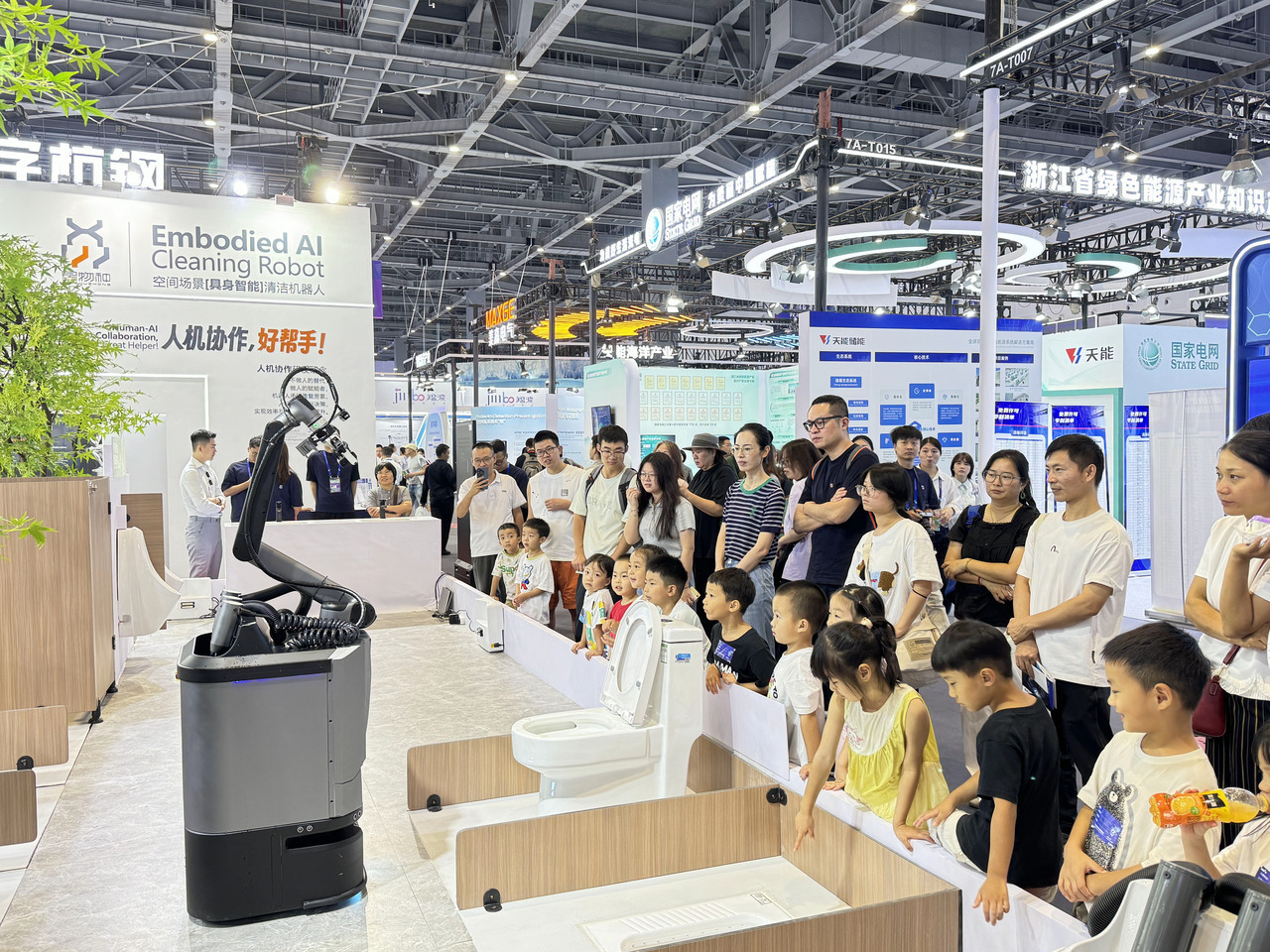 在阿联酋展商侯赛因看来,“图灵1号”解决了当地服务业的两个痛点:一是当地高达40%的保洁岗位空缺率,二是市面上99%的清洁设备只能处理地面问题。“这款机器人不仅能够完成地面清洁,还能识别并清洁洗手台、马桶等立体空间,甚至能进行高温消毒。”侯赛因与同伴在数贸会上当场下单了200台。