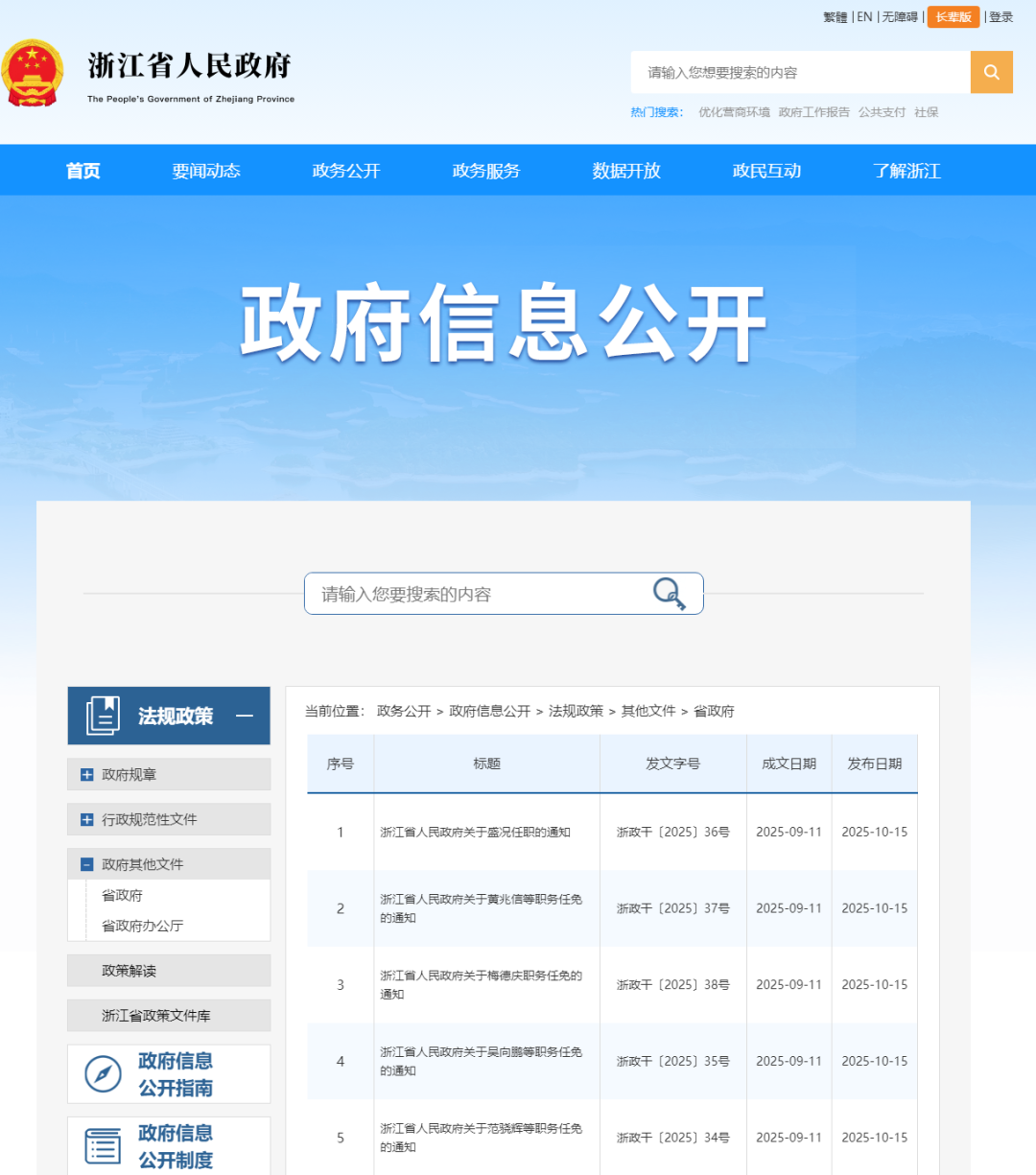 15日,浙江省人民政府网站公布一批人事任免通知,其中涉及多所高校人事调整。具体情况如下: