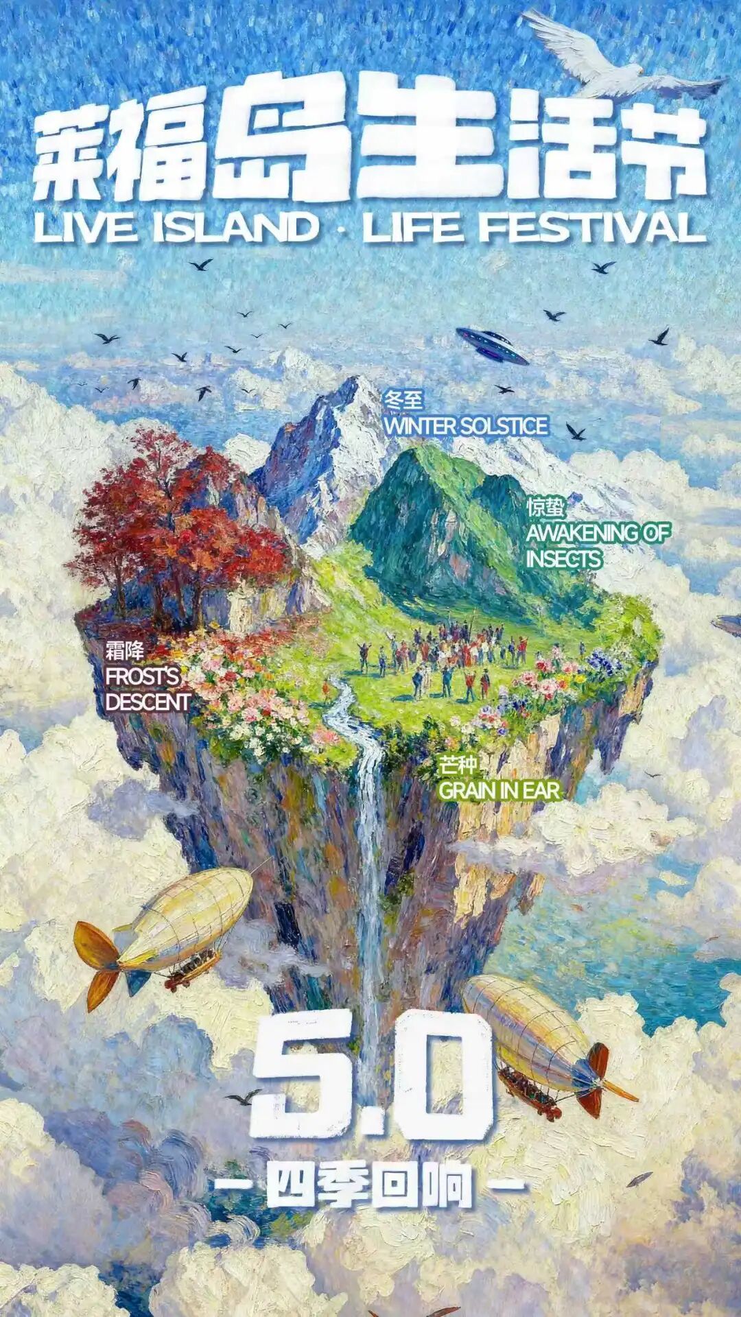 被众多乐迷视为精神乌托邦的莱福岛生活节,是近年来最受乐迷喜爱的户外音乐IP之一。5.0定档11月16日,本届以「四季回响」为主题,继续延续“音乐节+”的多元理念,融合跨界元素,为乐迷打造一个充满创意与温度的“岛”。
