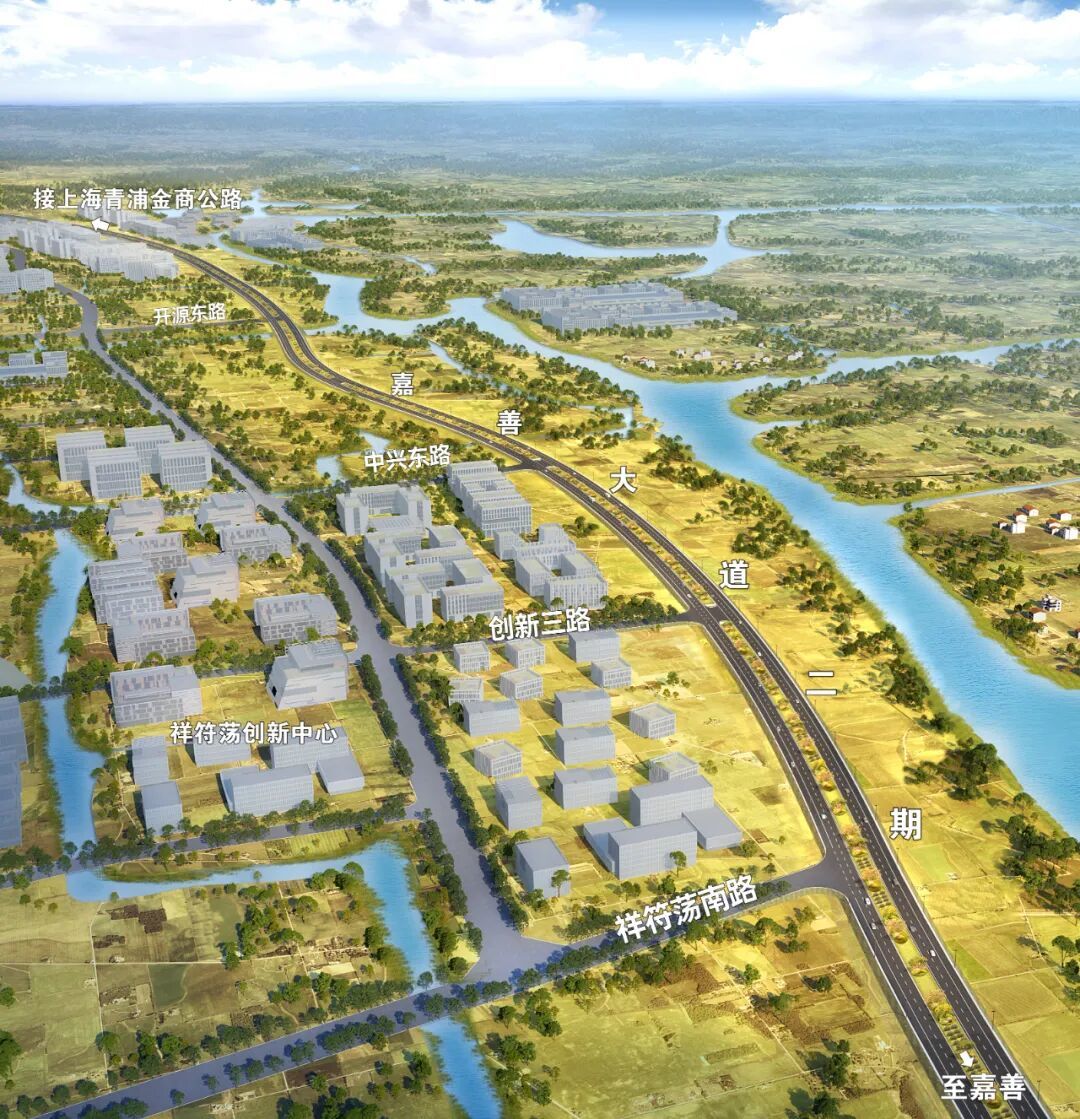 嘉善大道(祥符荡南路至省界段)项目起于规划祥符荡南路,终于浙沪省界北港村界河处,与青浦区金商公路顺接,路线全长7.8公里,采用一级公路(兼顾城市道路)技术标准,设计速度80公里/小时。