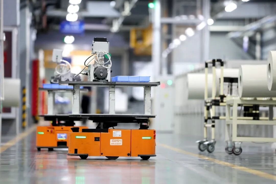 温州苍南县天信仪表集团有限公司数字化车间,产线有序运行,AGV智能小车来回穿梭运输物料 图源:潮新闻客户端