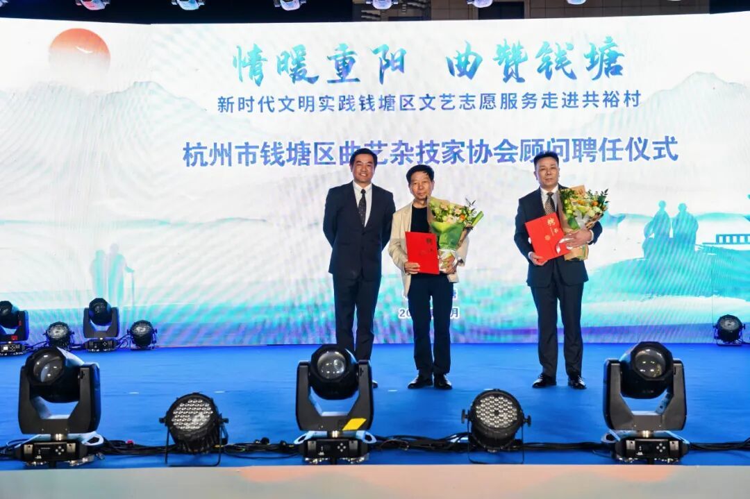 活动现场,钱塘文艺潮志愿小分队正式授旗成立,并同时启动钱塘区文艺志愿服务项目,标志着钱塘的文艺惠民工作迈入了规范化、常态化的全新阶段。为更好地传承文艺薪火,钱塘区曲艺杂技家协会还特别聘任中国曲艺最高奖“牡丹奖”得主方剑林,钱塘区最美长者、老一辈曲艺名家张本治担任协会第一届顾问,为钱塘的文艺发展注入强大专业力量。