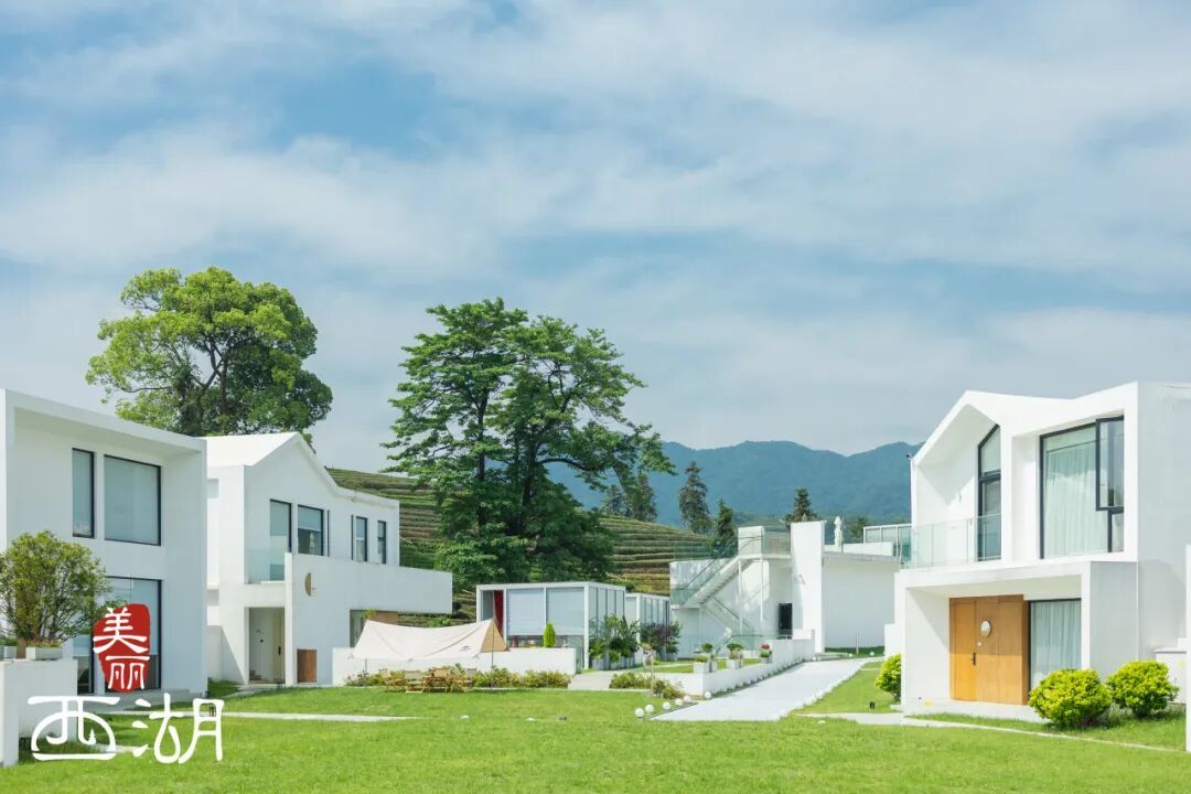 陌领融郡酒店是上城埭村标志性小型精品度假酒店,占地面积约为12亩,被茶园环绕。设计师以山谷茶野为底色,将向往的美好融入住宿、餐饮、书吧、雅集、社交等鲜活的生活场景中。在此不仅可以置身于绝美的自然胜境,还能满足对理想生活的无限想象。