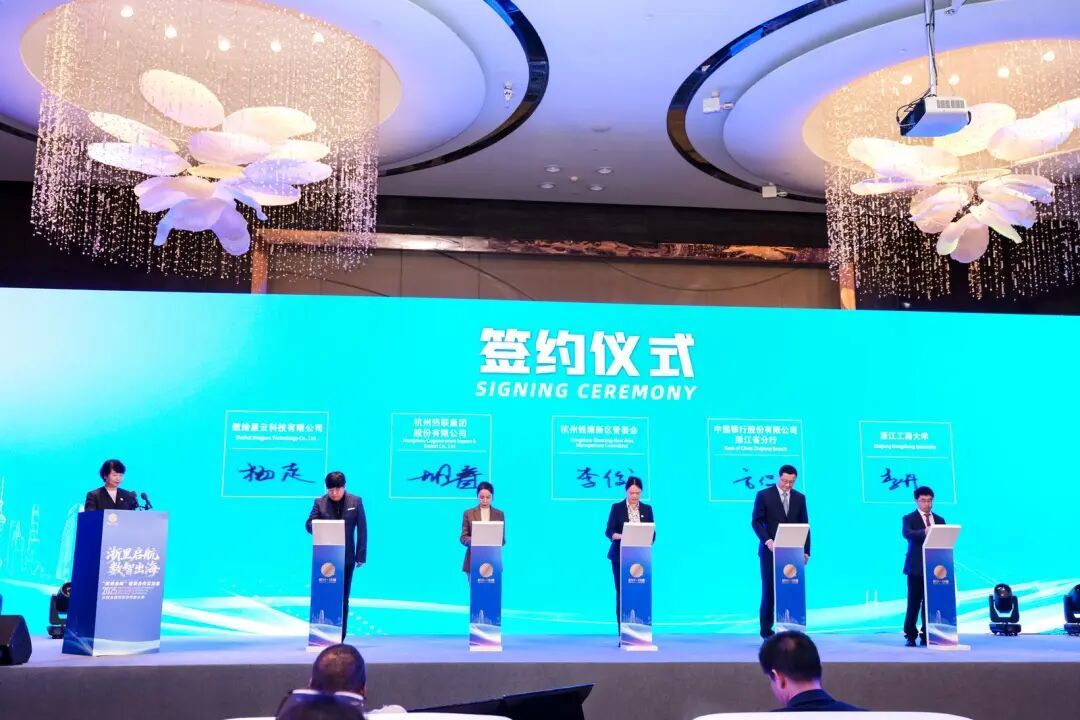 现场签约环节更是亮点纷呈,钱塘集中签署四项重要合作协议:与中国银行股份有限公司浙江省分行共建金砖国家特殊经济区中国合作中心;与杭州热联集团股份有限公司深化金砖经贸和产业领域战略合作;与浙江工商大学开展金砖智库建设与人才培养校地合作;与数绘星云科技有限公司共建AI科技综合跨境电商服务平台“出海匠”。一系列合作的达成,将为金砖经贸合作注入更强劲动力,为企业“扬帆出海”构筑坚实后盾。