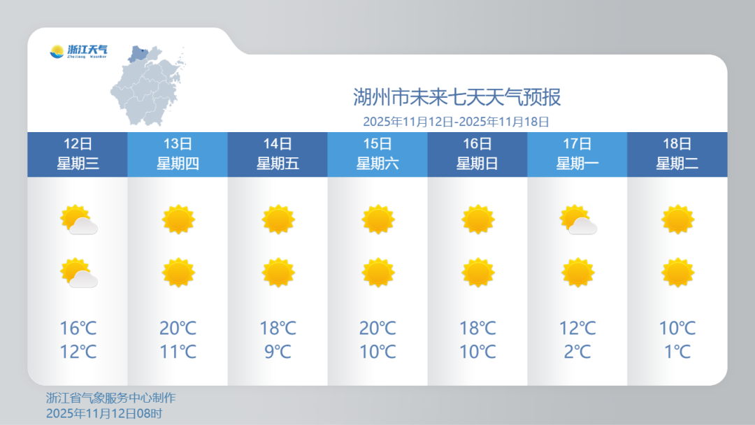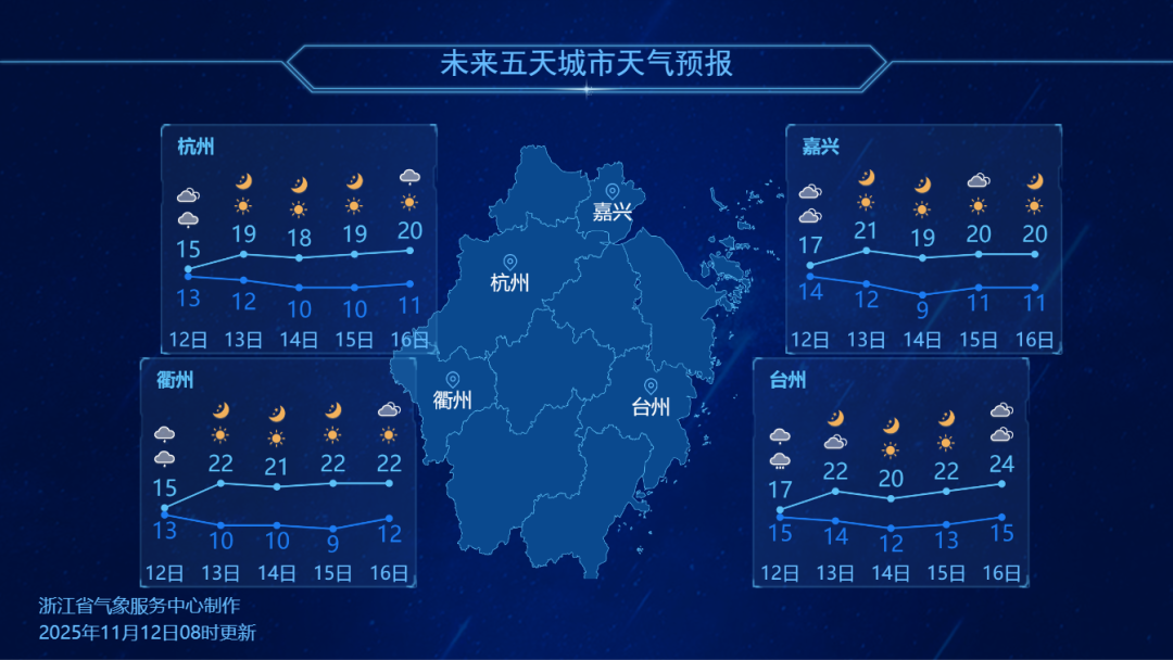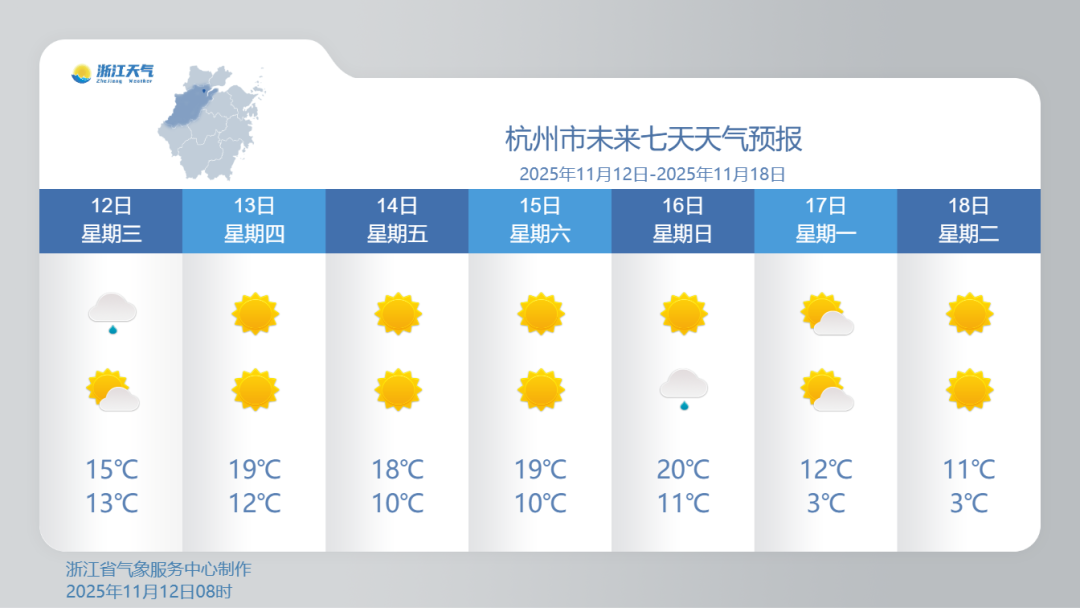雨水方面,今天上午,浙南和沿海地区的雨还需要点时间来收尾,其余地区降水停止,云开雾散,阳光蠢蠢欲动出来露脸。明天开始,全省好天气回归,阳光明朗,气温适宜,“秋高气爽”闪亮登场。