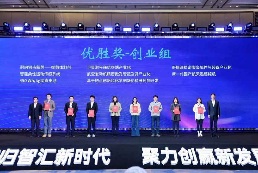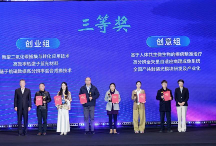 萧山区委副书记、区长姜永柱,萧山区委常委、萧山经济技术开发区党工委书记、管委会主任许昌为创业组优胜奖项目代表颁奖